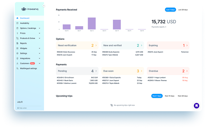 Inseanq empowers your agent network with modern agent portal, instant confirmation, and trip details. It leads to faster booking processing with confidence.